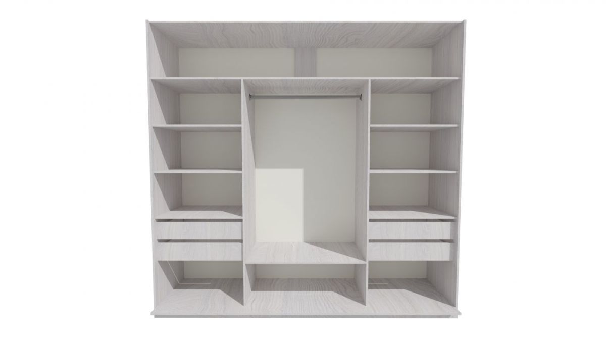 Шкаф-купе 2250 серии SILVER S5+S1+S5 B22+PL2 (по 2 ящика лев/прав+1 штанга+1 полка) профиль «Серебро» вы можете купить в интернет-магазине Madimart.ru по цене 64 890 руб. Только качественная мебель от Российских брендов. Если у вас возникли вопросы или вам нужна консультация по наличию, срокам доставки, ценам, обращайтесь любым удобным способом.Вы можете оформить заказ любым удобным вам способом:
