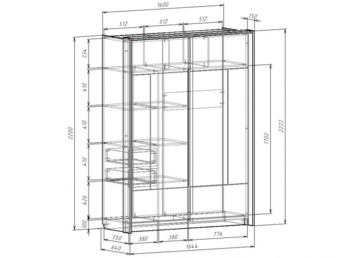 Размер (Ш*Г*В): 1644*640*2222 мм