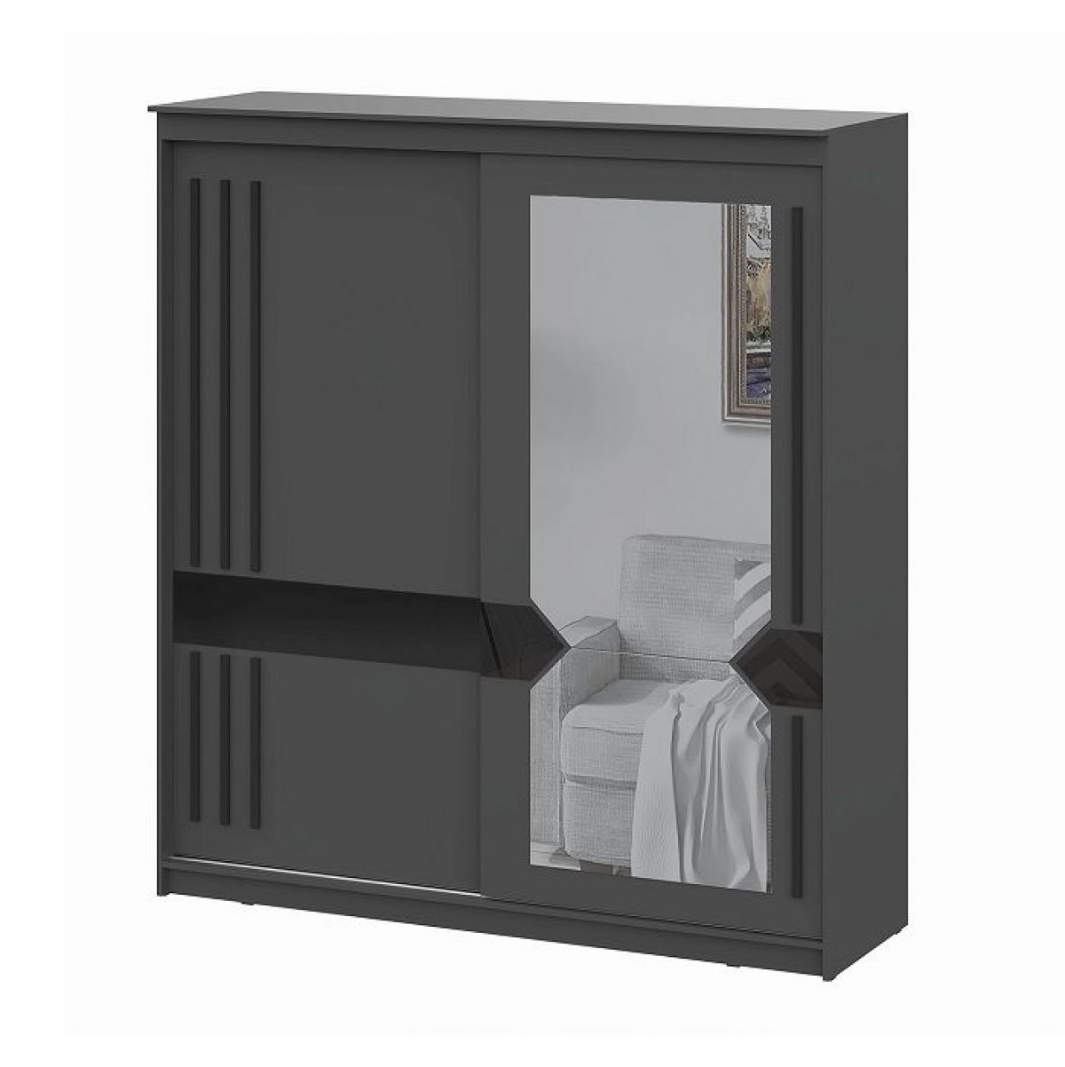 Шкаф-купе №25 Блэк ЛАЙТ (2000) Графит серый/Лакобель/Черный матовый