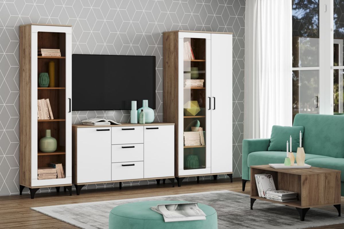 Шкаф-пенал НМ 013.06 "Марсель" (Меренга/Дуб Крафт Табачный)