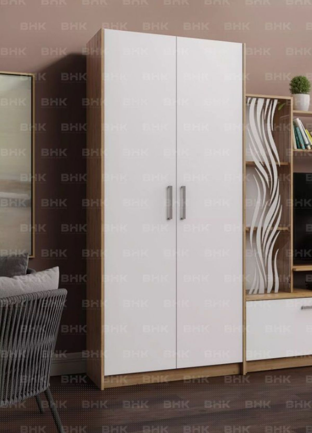 Гостиная Дарья Шкаф (полки + выдвижная штанга) Дуб Вотан/Белый глянец