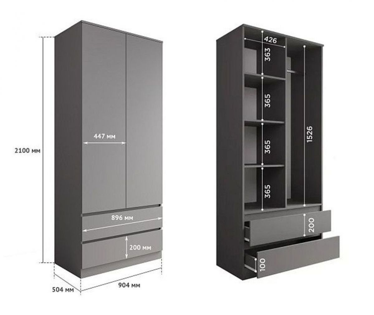 МОРИ МШ 900.2 Шкаф с 2-мя дв. и 2-мя ящ. ВЫСОКИЙ (Графит)