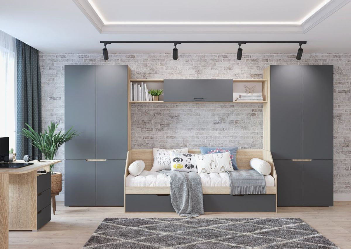 Шкаф 2-х створчатый АНТАЛИЯ (Сонома/Графит софт)