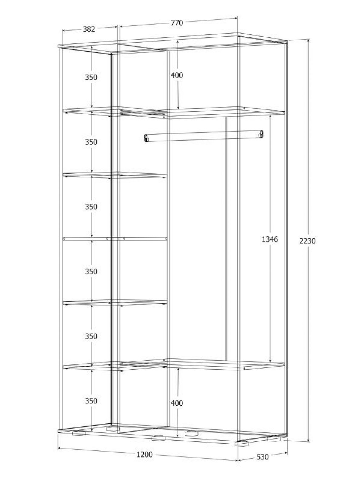 Габаритные размеры (ШхГхВ), мм: 1200х530х2230