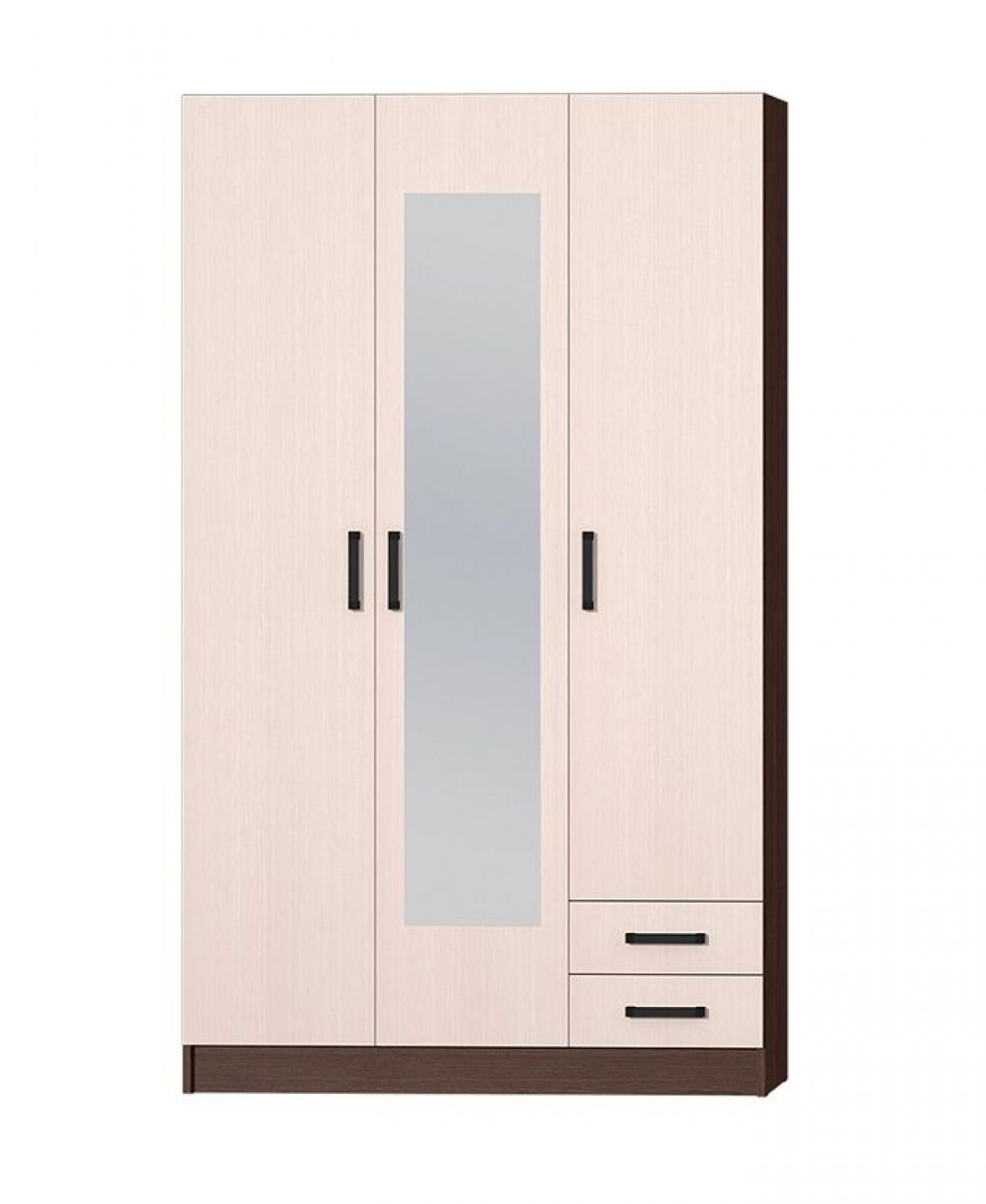 Компактный и недорогой трехстворчатый шкаф "Эконом" отлично подойдет для небольших помещений: прихожих, детских, спален. Такая мебель позволяет хранить множество необходимых вещей и вместе с тем не выглядит громоздкой. В дизайне используются популярные контрастные цвета. Центральный фасад декорирован зеркалом.