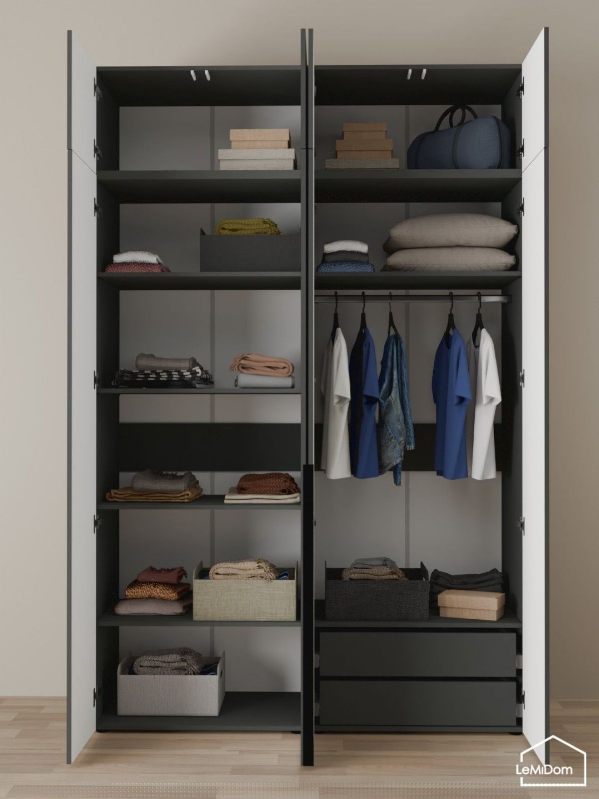 Шкаф с антресолью Linnea MHR-4A-2 2450х1600х510 (Графит-М 11.1.25)